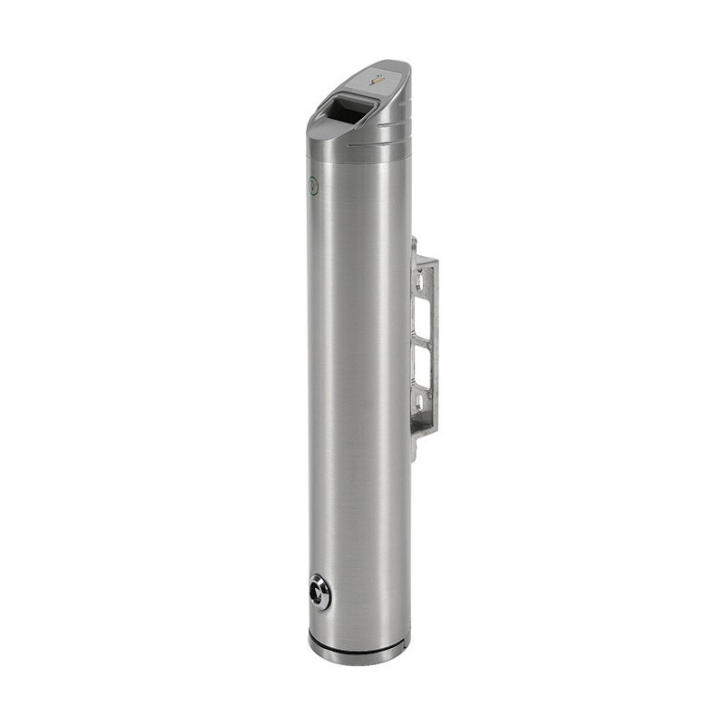 Cendrier mural cylindrique. Système de verrouillage empêchant tout utilisation abusive. Bonne résistance aux intempéries. Discret et élégant.