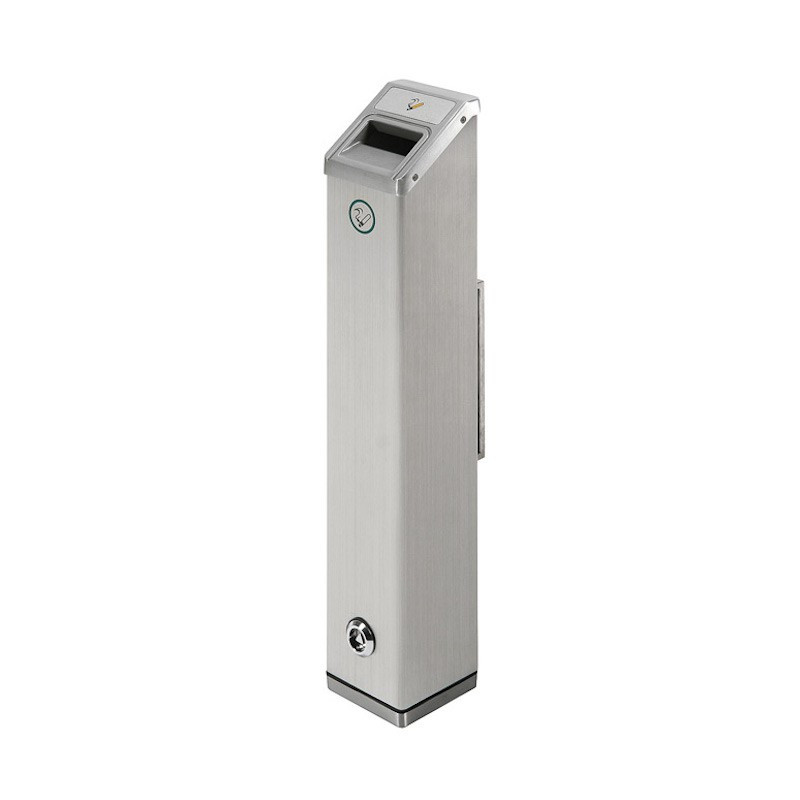 Cendrier mural rectangulaire. Système de verrouillage empêchant tout utilisation abusive. Bonne résistance aux intempéries. Discret et élégant.