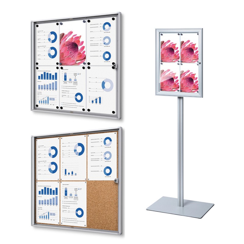 Vitrine d'affichage d'intérieur standard : finition alu Profil S : 23 x 41 mmOption : classement au feu B1 A partir de 139,57 € HT soit 167,48 € TTC