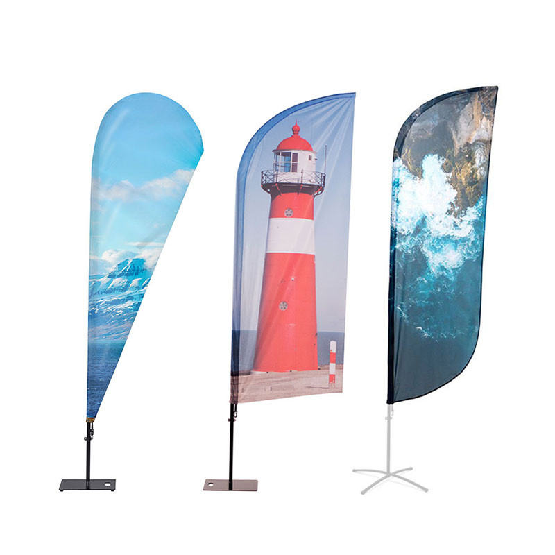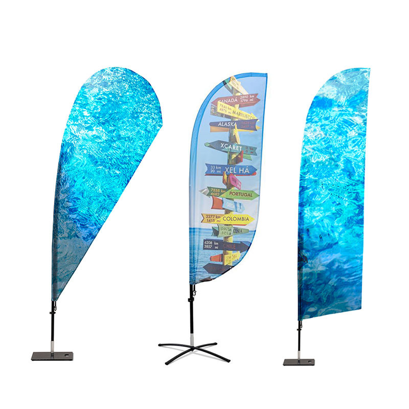 Les beach flag se démarquent grâce à leur conception unique et à leur visibilité remarquable. Leur utilisation s'étend largement : des festivals estivaux et des événements sportifs aux promotions commerciales sur les lieux de vente au détail. Ces bannières, souvent installées sur des plages, des terrains de sport ou des zones à fort trafic, sont conçues pour être visibles de loin et peuvent résister aux intempéries.