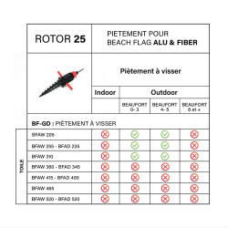 Le piètement avec rotor de 25 mm est compatible avec l'ensemble des Beach flag Alu et Beach flag Fiber.