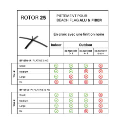 Le piètement avec rotor de 25 mm est compatible avec l'ensemble des Beach flag Alu et Beach flag Fiber.