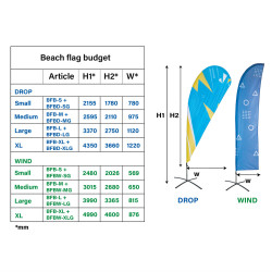 Le beach flag budget avec la toile Wind est le modèle économique de grande qualité pour un usage en extérieur comme les évènement sportif en plein air, les entres commerciaux ou encore les foires.