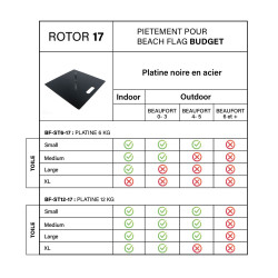 Le piètement avec rotor de 17 mm est compatible avec l'ensemble des Beach flag Budget avec une toile Drop ou Wind.
