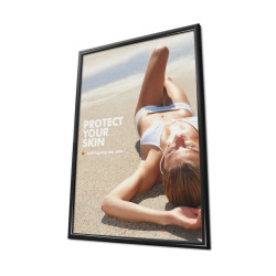 Ce cadre clic-clac est conçu en aluminium de haute qualité. Sa finition noire est assortie d’une face avant en plexiglas antireflet. Le produit inclut un emballage individuel ainsi que les vis et chevilles nécessaires à son installation.