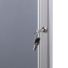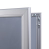Le changement de l'affiche est facilité par le biais d'une porte battante en Policarbonate 0,75 mm d'épaisseur. La porte dispose d'une serrure à clés. Afin d'apporter une finition soigné de l'ensemble. Les angles sont bizautés.