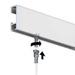 Le fil câble en acier Twister est la solution la plus simple pour fixer vos tableaux au mur. Le système Twister peut coulisser le long du rail. Il permet ainsi de positionner, a volonté, vos tableaux exactement à l’endroit désiré.