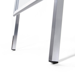 Stop-trottoir chevalet en Aluminium en profil Aluminium 32 mm pour une meilleur solidité dans le temps. Design épuré et pratique. Bonne stabilité grâce aux inserts en plastique au niveau des pieds en Aluminium. Très facile à installer.
