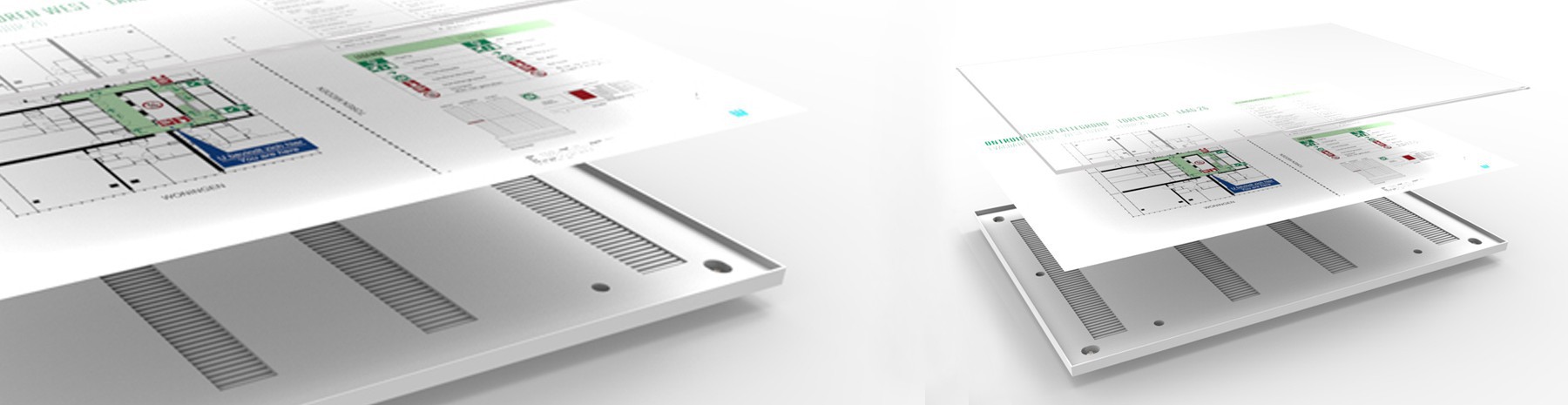 Réalisé en plastique ABS. disponible en finition Noir et Gris. Disponible aux formats : 150x150, 300x150, A6, A4 et A3.