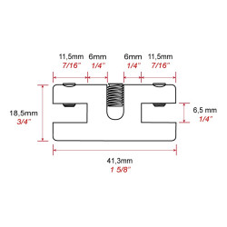 Rajouter 9 mm à gauche et 9 mm à droite de votre panneau pour calculer l'entraxe des tiges (Ø 6 mm).