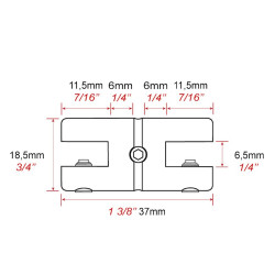 Ex : Tablette de 300 mm de large : 300 + (2x6) = 312 mm d'entraxe.