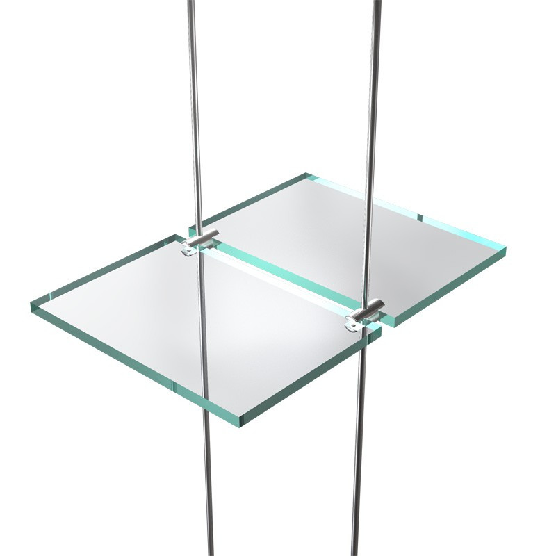 Le support support double tablette jusqu'à 10 mm (pour tige Ø 6 mm) pour l'affichage suspendu et la signalétique de la société Altumis (fabricant) vous permet de fixer une tablette de façon horizontale.