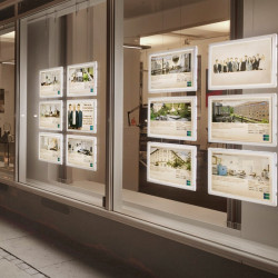 Porte-affiche LED Format A0 double face. Design épuré et minimaliste. Changement facile de l'affiche.