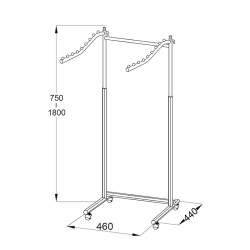 Porte-vêtement autoportant mono-face. Portant double avec une hauteur ajustable de 750-1800 mm. Penderie facile à monter sans outils.