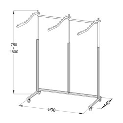 Porte-vêtement autoportant mono-face. Portant triple avec une hauteur ajustable de 780-1520 mm. Penderie facile à monter sans outils.