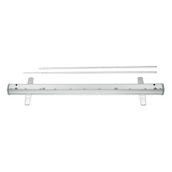 2 mâts télescopique en face arrière de la bannière sont réalisés en aluminium anodisé. L’installation de la bannière et son alignement sont facilités grâce au rail en partie haute avec de nombreux points de serrage . L’ensemble est extrêmement robuste.