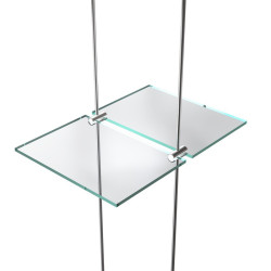 Le support support double tablette jusqu'à 6 mm (pour tige Ø 6 mm) pour l'affichage suspendu et la signalétique de la société Altumis (fabricant) vous permet de fixer une tablette de façon horizontale.
