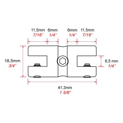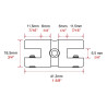 Rajouter 9 mm à gauche et 9 mm à droite de votre tablette pour calculer l'entraxe des tiges (Ø 6 mm).