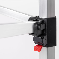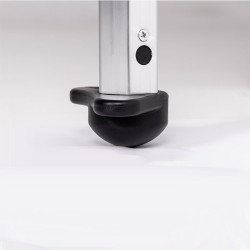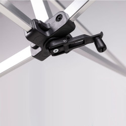 La tente pliante appelée aussi gazébo, est fabriquée en profil aluminium avec une anodisation incolore. Les 4 poteaux ont une forme hexagonale de 40 mm pour une meilleure résistance. Les pieds ont une forme arrondie (brevetés) pour faciliter son déplacement dans l'herbe ou sur du bitume par exemple. En partie haute une manivelle permet de tendre votre toile supérieure (canopy).