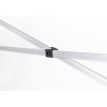 La tente pliante appelée aussi gazébo, est fabriquée en profil aluminium avec une anodisation incolore. Les 4 poteaux ont une forme hexagonale de 40 mm pour une meilleure résistance. Les pieds ont une forme arrondie (brevetés) pour faciliter son déplacement dans l'herbe ou sur du bitume par exemple. En partie haute une manivelle permet de tendre votre toile supérieure (canopy).