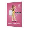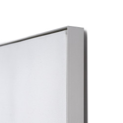 Le cadre est réalisé en aluminium anodisé avec une anodisation incolore. Le profil rigide extra-fin de 22 mm permet de disparaitre visuellement et de donner toute l'attention à l'affichage. Le cadre, de la toile tendue sur cadre format poster, est conçu pour une installation murale avec un système de suspensions inclus.