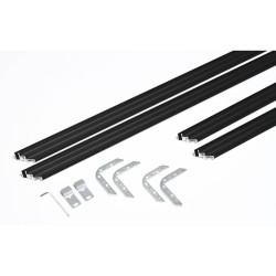 Le cadre est réalisé en aluminium anodisé avec une anodisation noir. Le profil rigide extra-fin de 22 mm permet de disparaitre visuellement et de donner toute l'attention à l'affichage. Le cadre, de la toile tendue sur cadre noir, format poster, est conçu pour une installation murale avec un système de suspensions inclus.