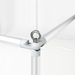 l'enseigne suspendue carré de la société Altumis est constitué d'un cadre léger en aluminium avec une anodisation de finition. Facile à monter sans outillage. Un kit de 4 câbles de suspension est inclu. (A noter que le câble de suspension au plafond n'est pas inclu).